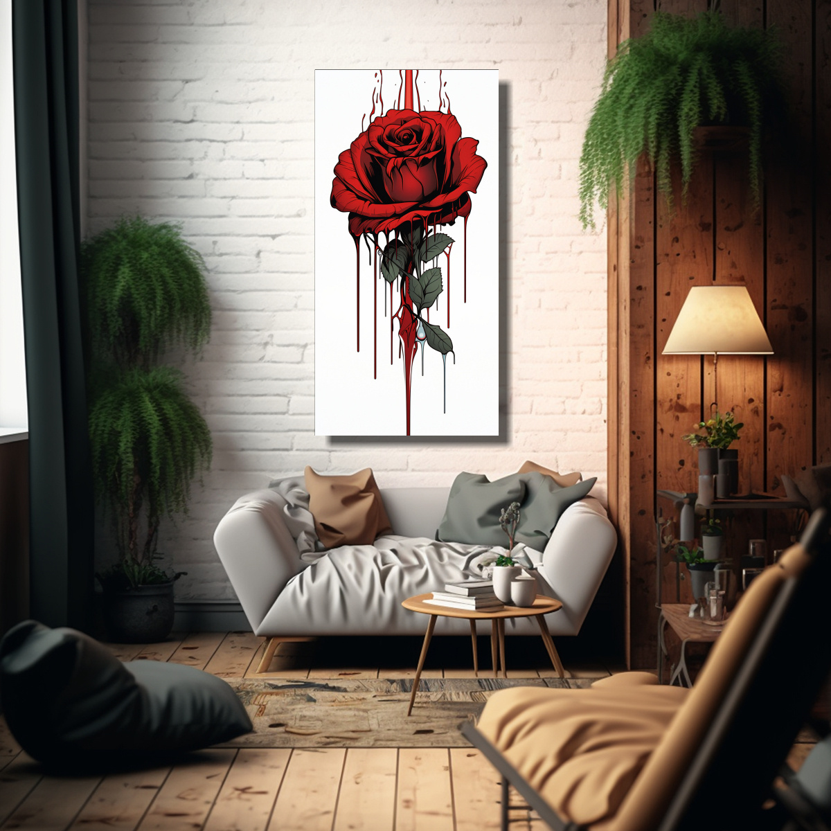 Cuadro Inspirador Habitación Con Rosa Sangrante Y Lienzo Estampado