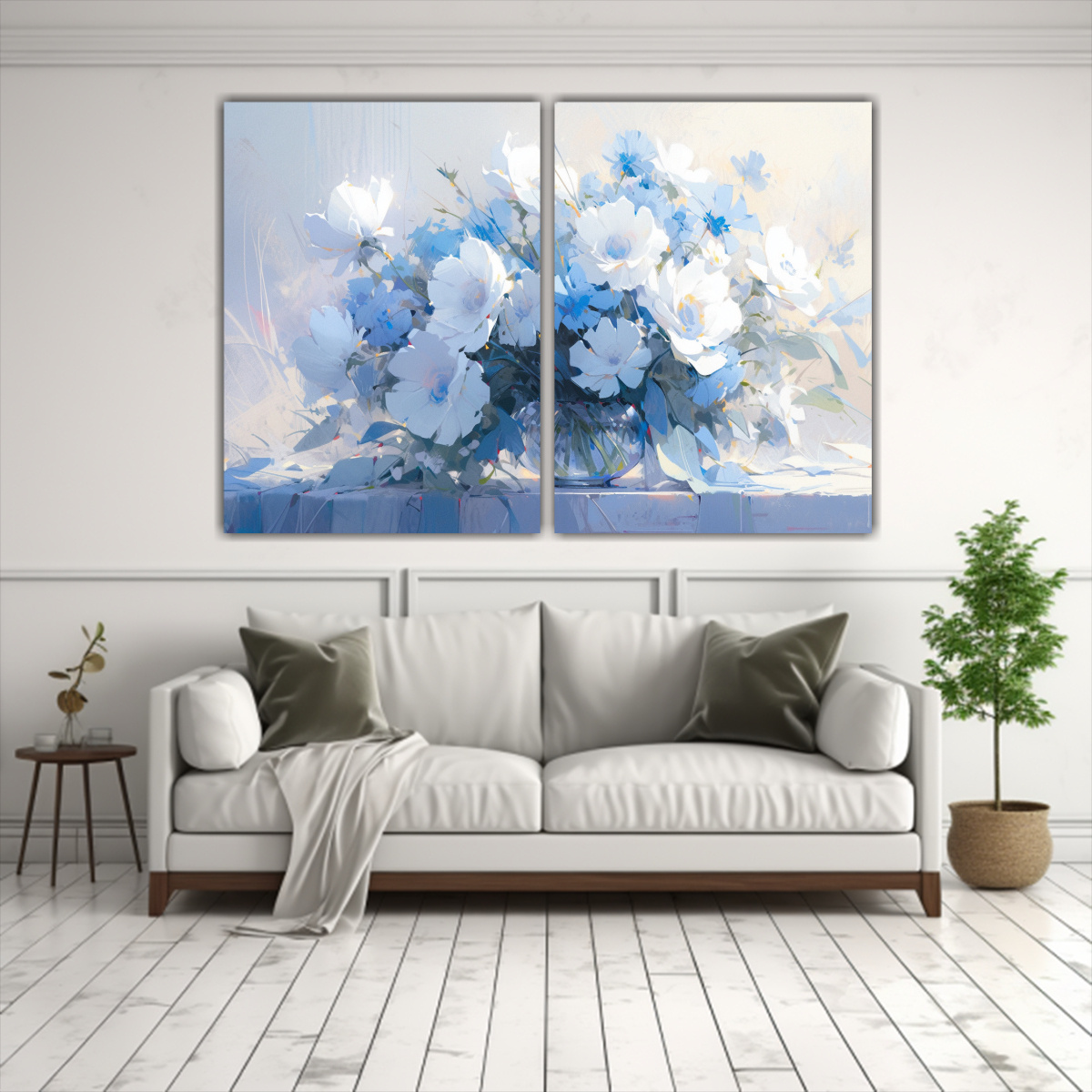 Agrega estilo y elegancia con esta pintura en lienzo de flores en colores azules y blancos La mejor calidad y precios accesibles en nuestra tienda Renueva tu hogar u oficina con arte único ¡Compra ahora y disfruta de la entrega más rápida!