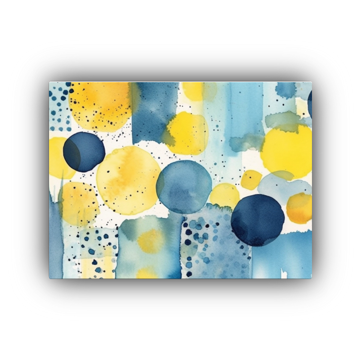 Este cuadro Intenso en acuarela y tinta estilo preescolar en tonos azules y amarillos se vería ideal en un ambiente moderno y minimalista Colócalo en una pared blanca para resaltar sus colores vibrantes y darle un toque de frescura a la habitación