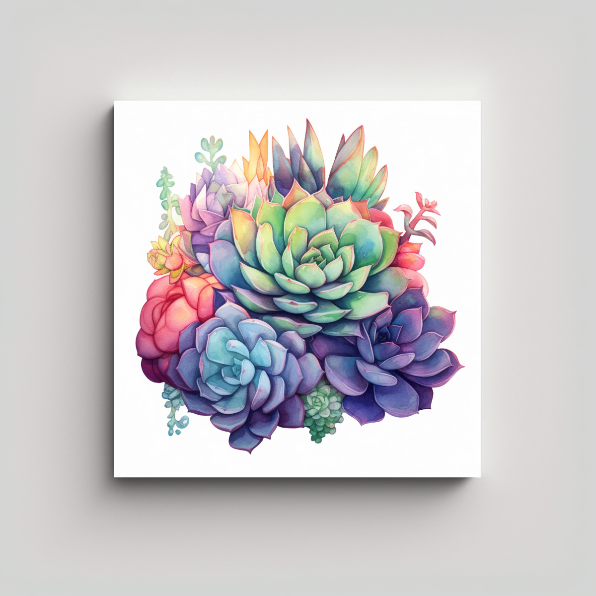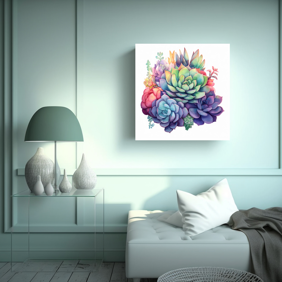 Cuadro Iridiscente De Suculentas En Tela En Bastidor Llamativo