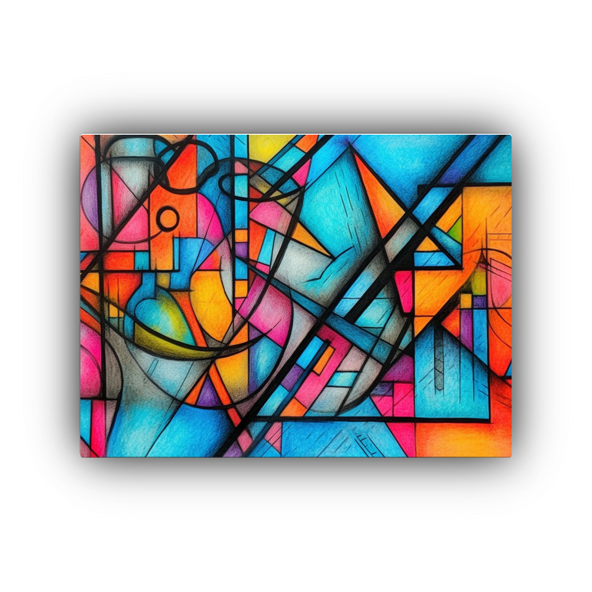 Cuadro Lienzo Abstracto Cubista Brillante Con Colores Neón.