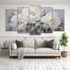 DecoCuadros te ofrece el Cuadro Lienzo Artes Pared Tonos Época Flores Peonías Blancas estilo decorativo, una opción perfecta para darle un toque elegante a tus paredes Con colores plateado, azul marino grisaceo, gris y beige, este cuadro se adapta a cualquier estilo de decoración Nuestros cuadros están impresos en tela de alta calidad y cuentan con bastidores de madera para una mayor durabilidad Además, ofrecemos precios competitivos y envío express a todas las regiones Descubre la mejor calidad al mejor precio en DecoCuadros