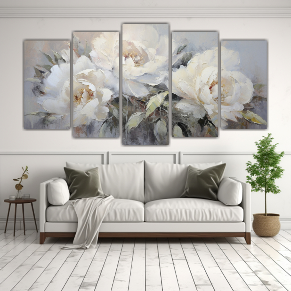 Este Cuadro Lienzo Artes Pared Tonos Época Flores Peonías Blancas estilo decorativo es perfecto para darle vida a tu sala de estar Colócalo sobre un sofá en tonos neutros para resaltar su belleza También puedes combinarlo con cojines en tonos plateados y grises para crear un ambiente sofisticado Si prefieres un estilo más relajado, coloca este cuadro en un dormitorio y combínalo con ropa de cama en tonos blancos y beige ¡Atrévete a añadir un toque de elegancia a tus espacios con este hermoso cuadro!