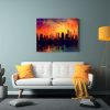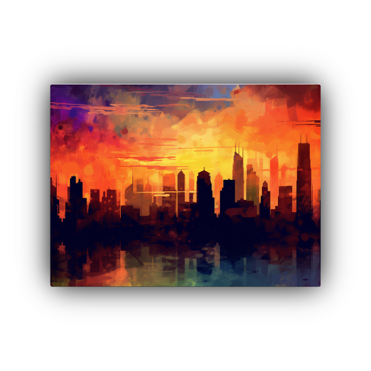 Cuadro Lienzo Atardecer Multicolor Con Silueta Skyline Expresiva