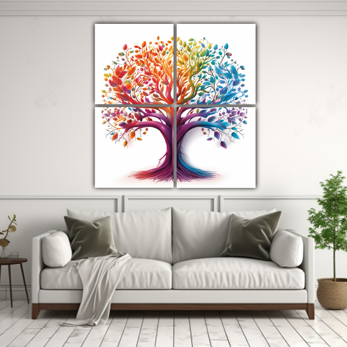 Este cuadro sería ideal para decorar tu sala de estar, creando un ambiente vibrante y lleno de color Puedes colocarlo como pieza central sobre un sofá gris o beige, combinándolo con cojines en tonos turquesa y lila para resaltar aún más los colores del cuadro También puedes complementar la decoración con accesorios en tonos plateados, como lámparas o marcos de fotos ¡Atrévete a darle personalidad a tu espacio con el Cuadro Lienzo Colorido Árbol de la Diversidad de DecoCuadros!