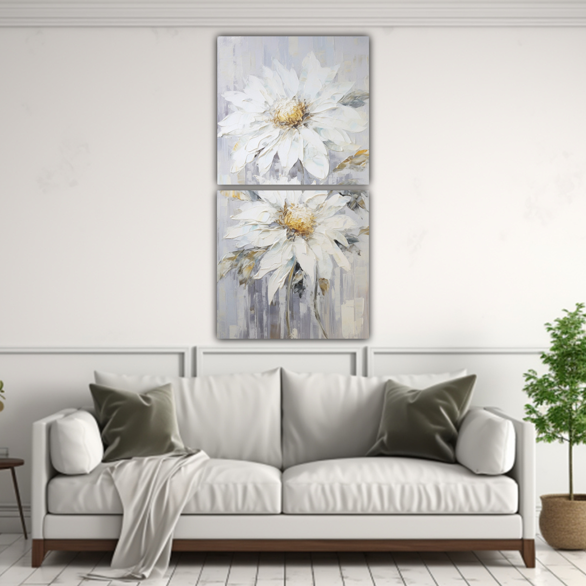 Decora tu hogar con el cuadro lienzo composiciones alegría girasoles blancos estilo de DecoCuadros Diseño exclusivo y entrega rápida en todo Chile