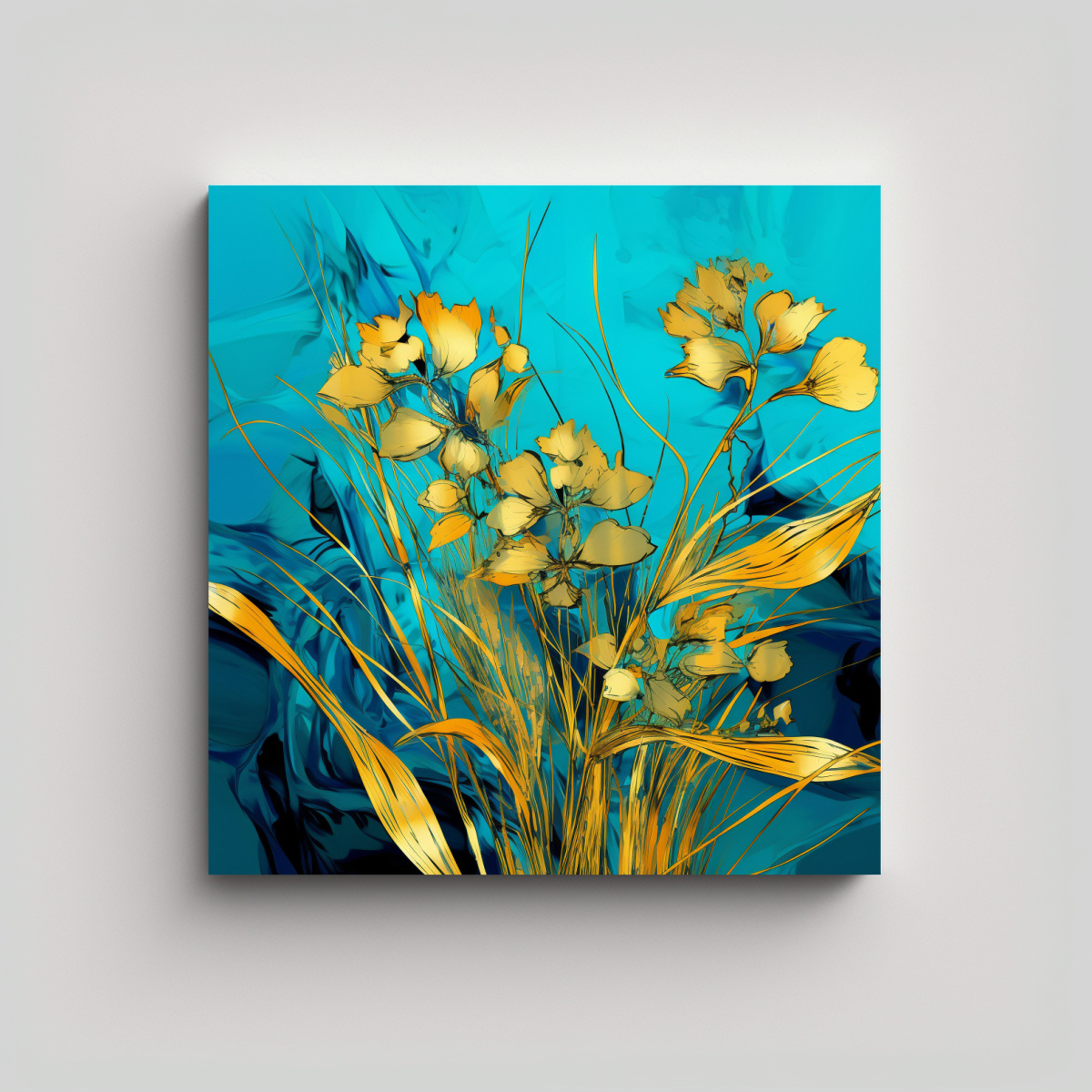 Cuadro Lienzo Decorativo Lemongrass Hierbas En Turquesa Y Dorado Neonoir
