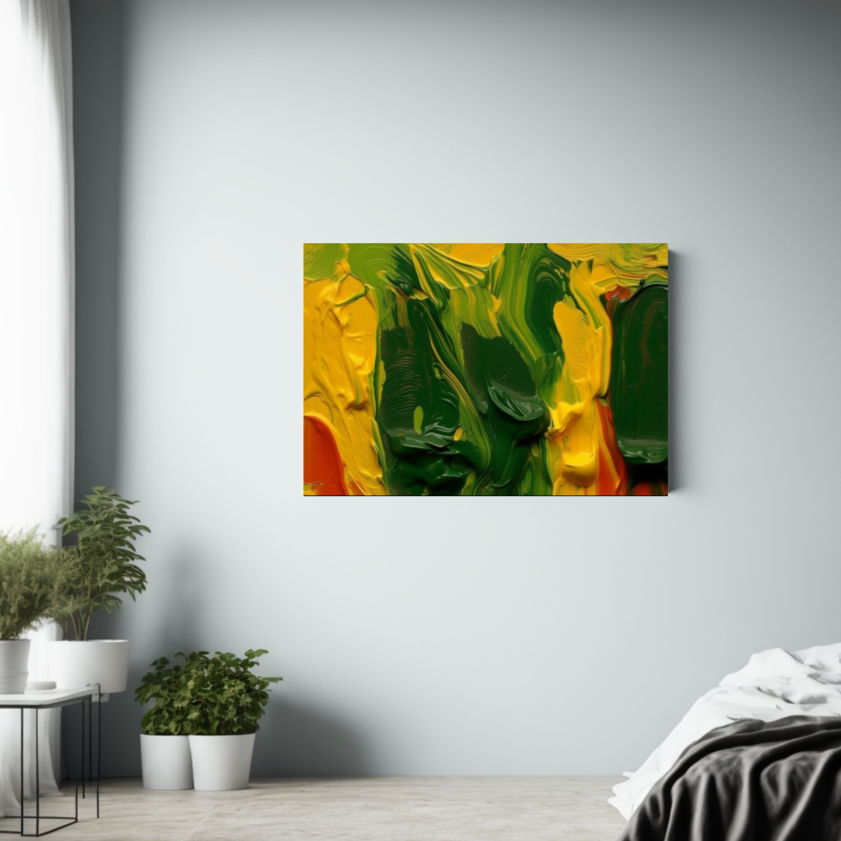 Cuadro Lienzo Expresión Originalidad Verde Amarillo Naranja Estilo Fluido
