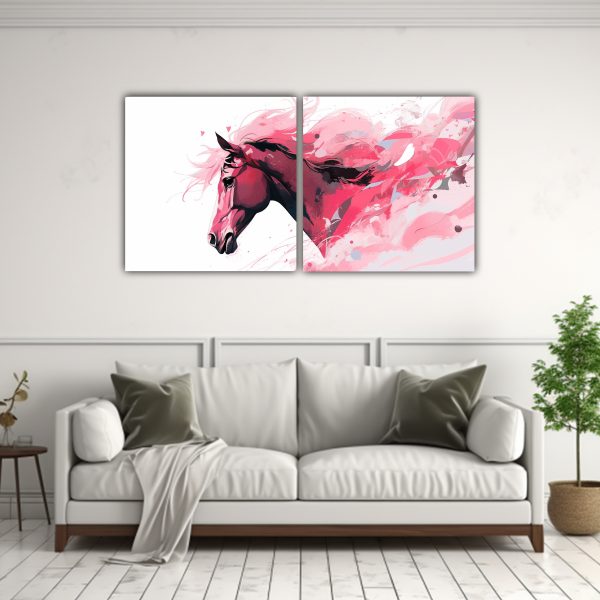 Cuadro Lienzo Imagen Simplicidad Caballo Blanco Y Rosa Estilo Neo Pop.