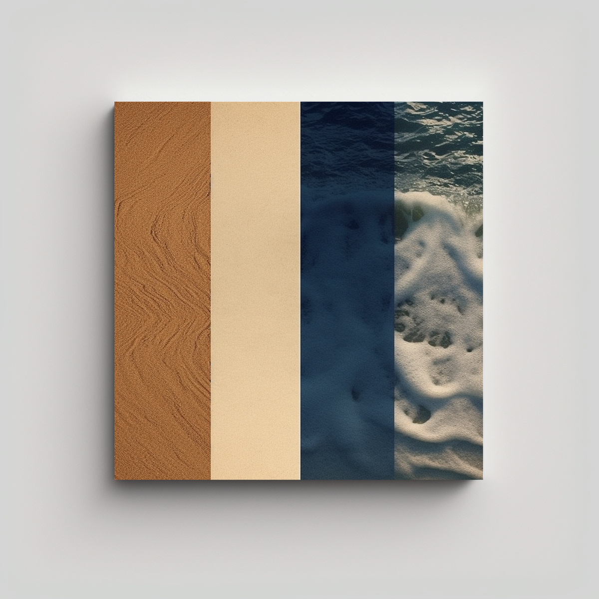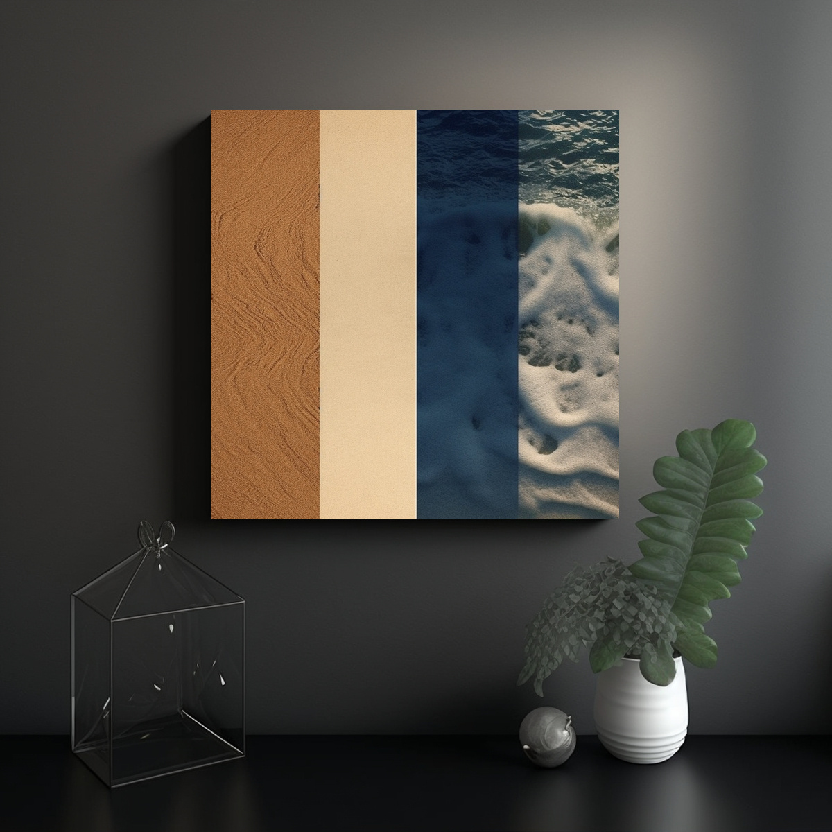 Cuadro Lienzo Inspiración Tríptico Azul Oscuro Y Arena Distribución Izquierda Y Derecha