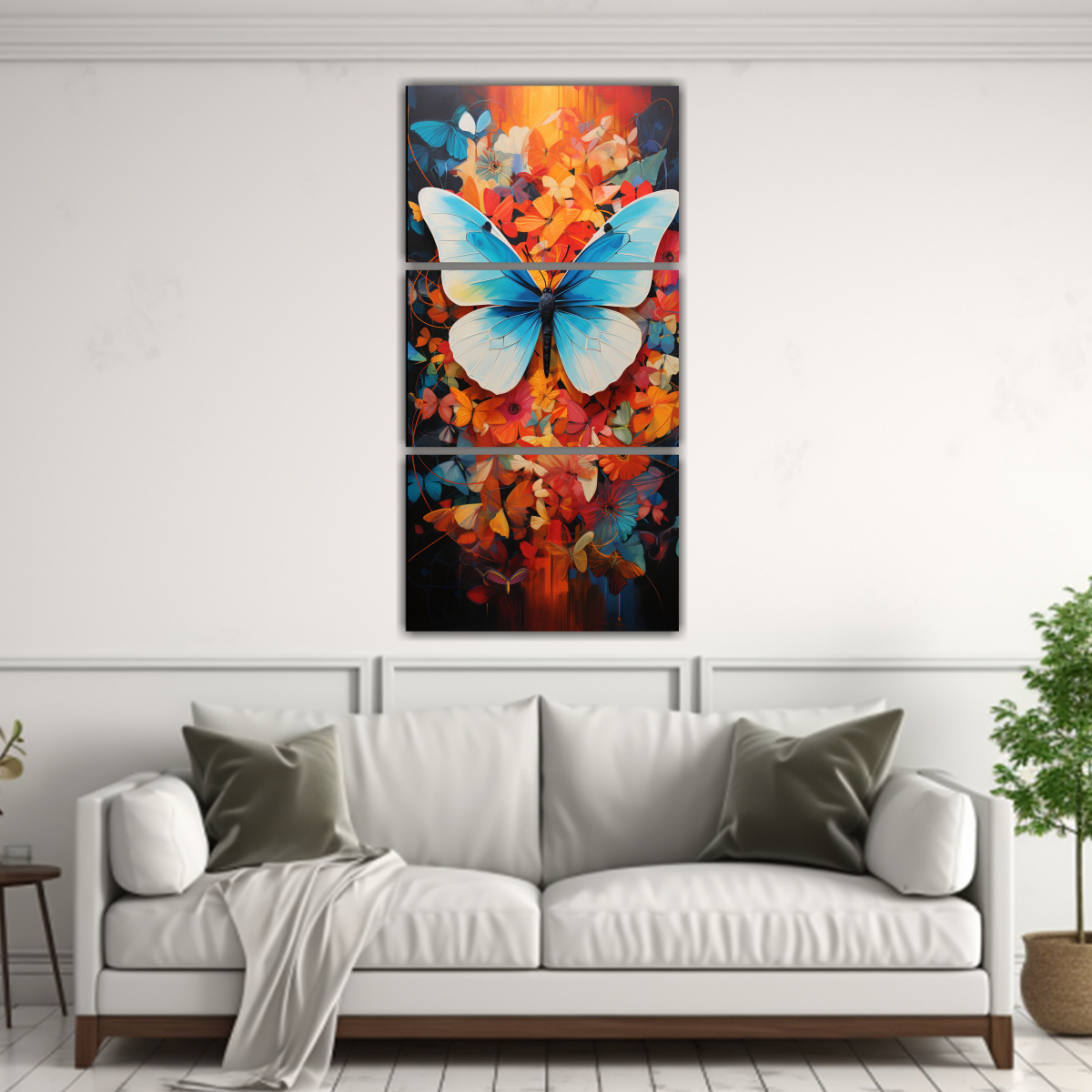 Este Set de 3 Lienzos Mariposa Abstracta es ideal para decorar tu sala de estar Colócalos juntos en una pared principal para crear un impacto visual o distribúyelos en diferentes espacios para una decoración armoniosa
