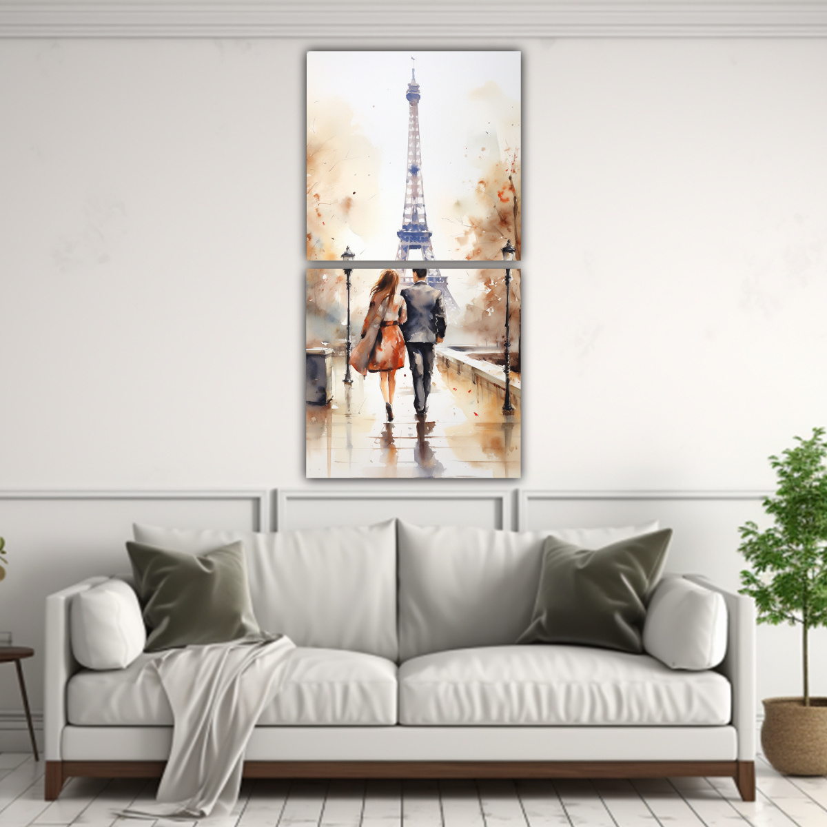 Cuadro Lienzo Perspectiva Pareja Joven Caminando Frente A La Torre Eiffel.