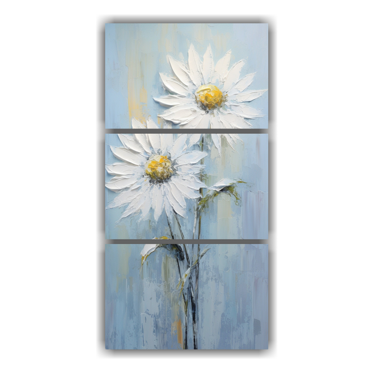 Cuadro Lienzo Pintura Girasoles Blancos Estilo Artesanal