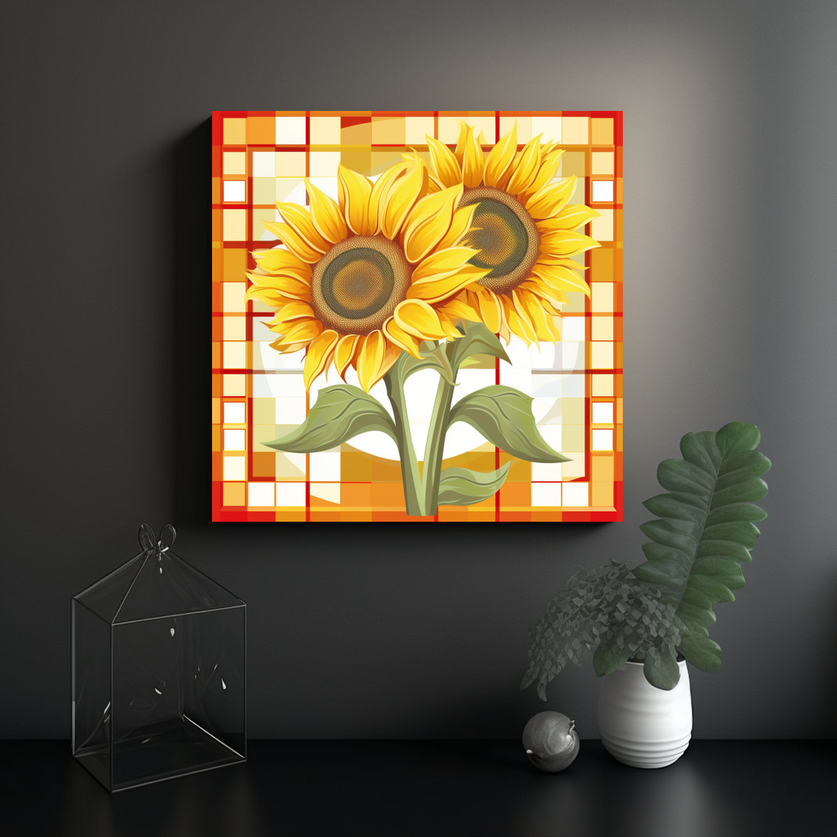 Coloca este cuadro en la sala de estar para darle un toque de frescura y luminosidad Combínalo con muebles en tonos neutros para resaltar los colores vibrantes de los girasoles ¡Crea un ambiente acogedor y sofisticado!