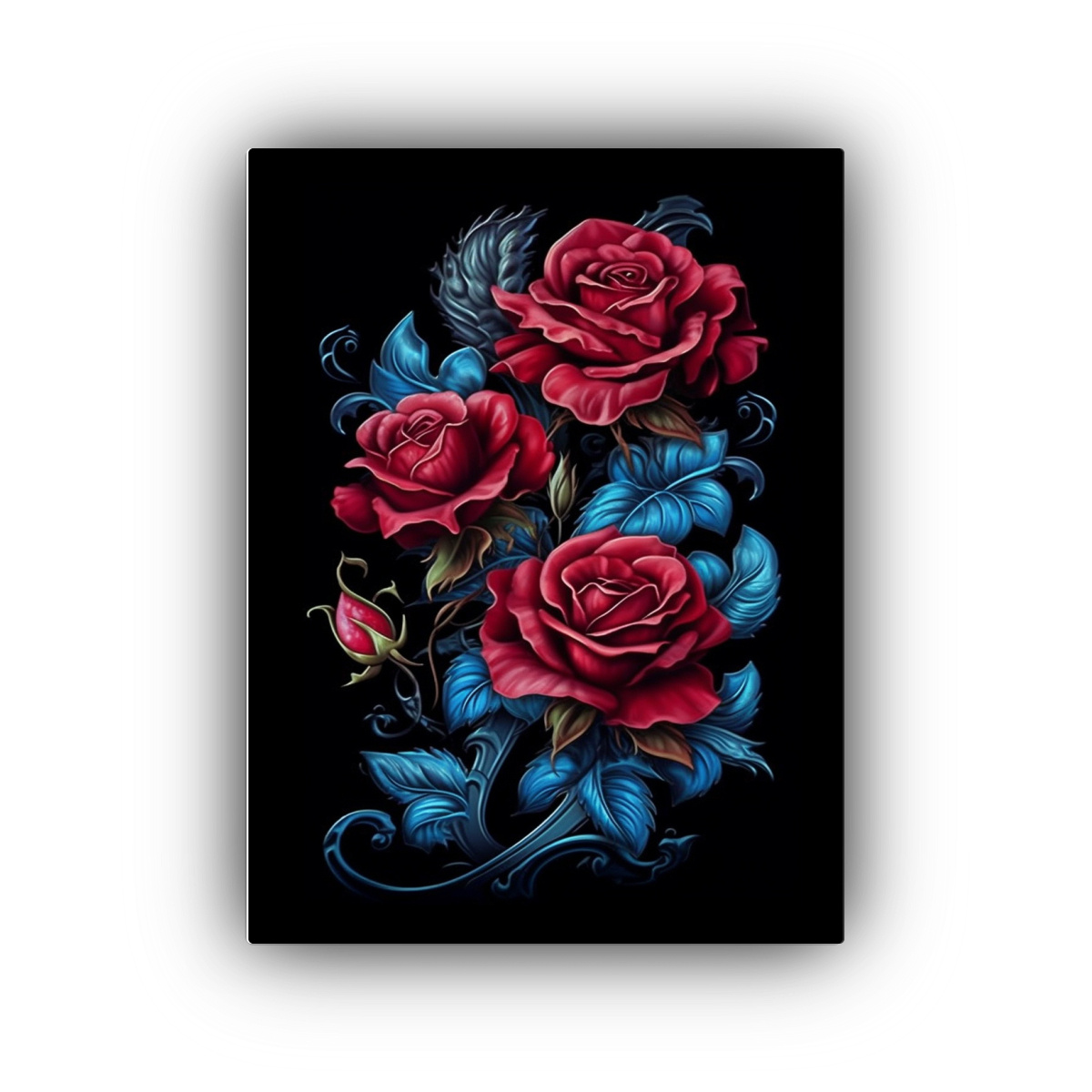 Cuadro Lienzo Tela Movimiento Multicolor Con Pintura De Rosas De Diamantes Sobre Fondo Negro.