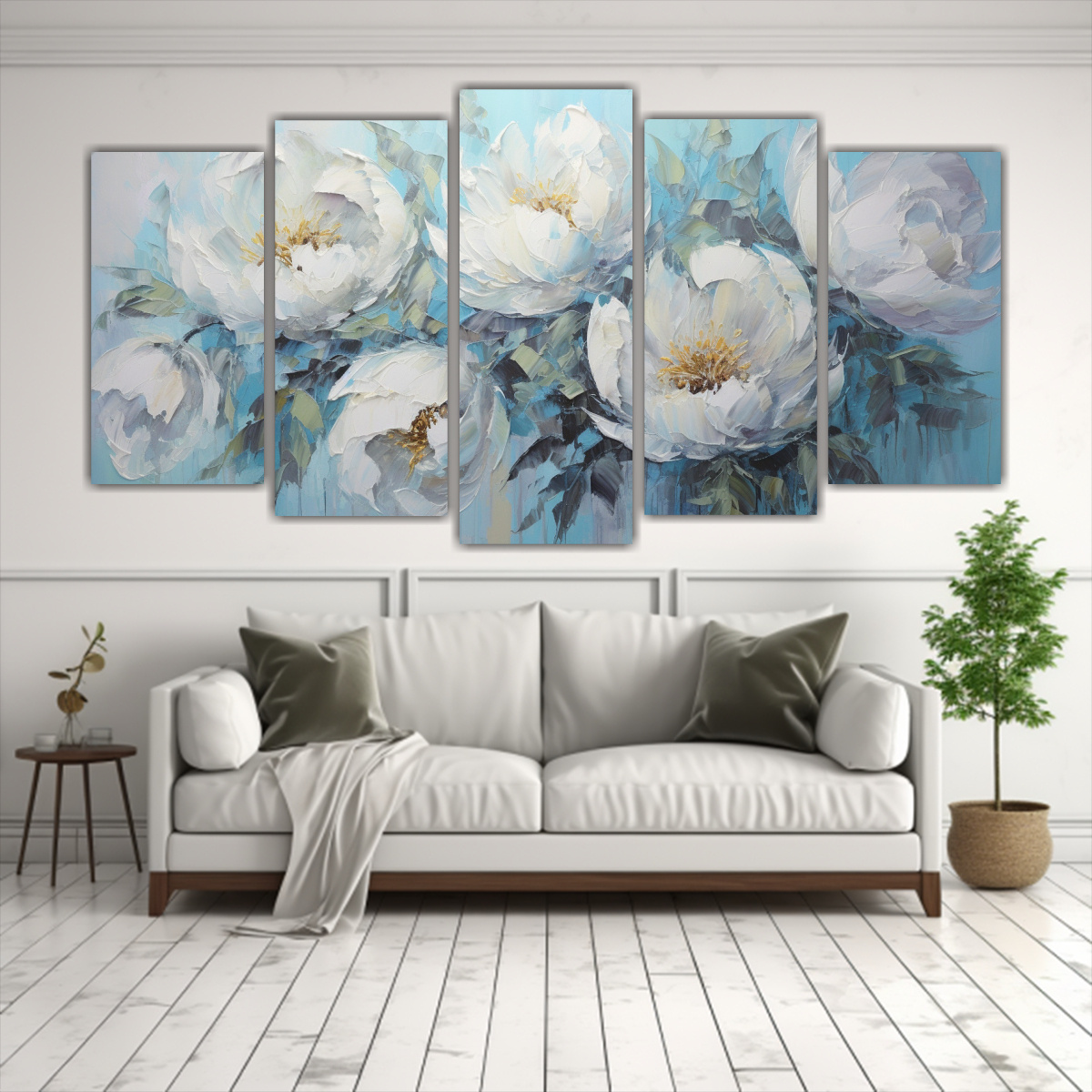 Cuadro Lienzo Turquesa Con PEONÍAS Modernas En Estilo Naturaleza Viva.