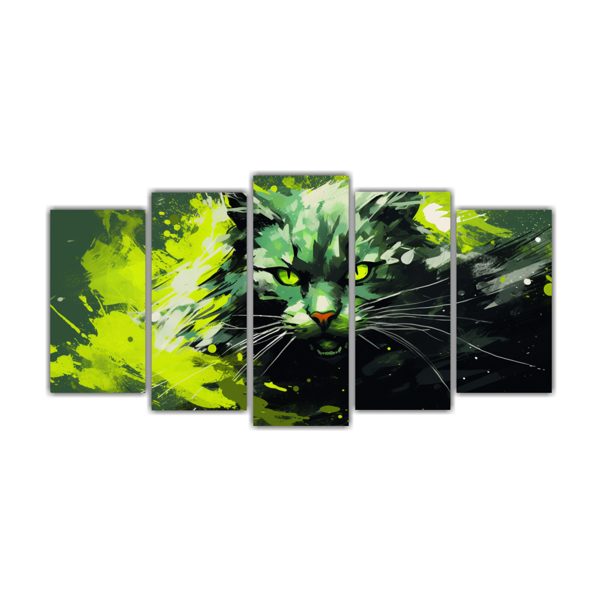 Cuadro Lienzos Moderno Mágico Gato Salvaje En Colores Verdes Arte Neo Pop