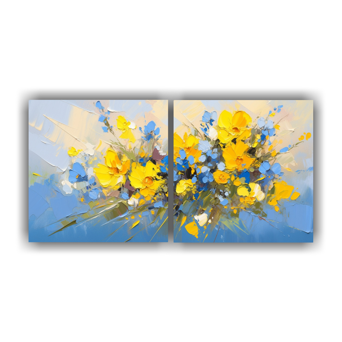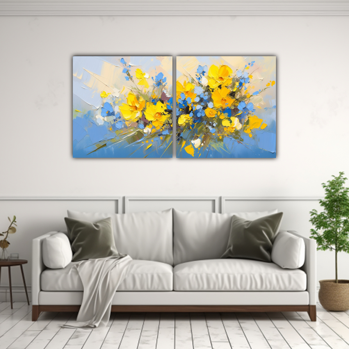 Cuadro Lienzos Vanguardia Comedor Amarillo Y Azul Flores Pintura En Lienzo Decorativa