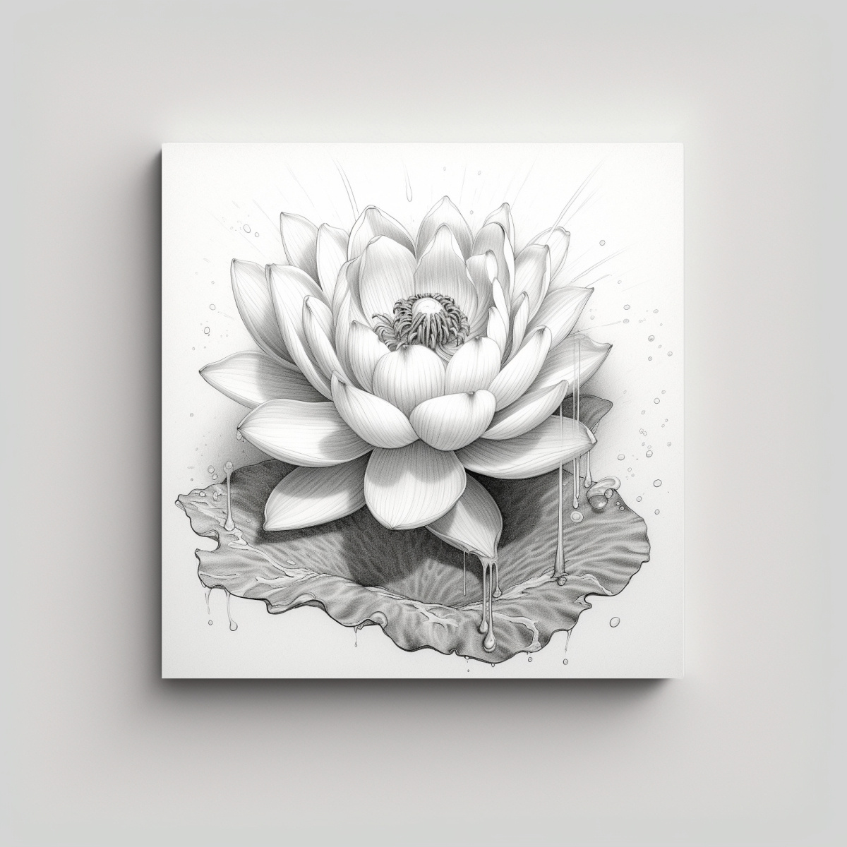 Cuadro Lotus Moderno Dibujo Linea Relieve Arte Decorativo Pared