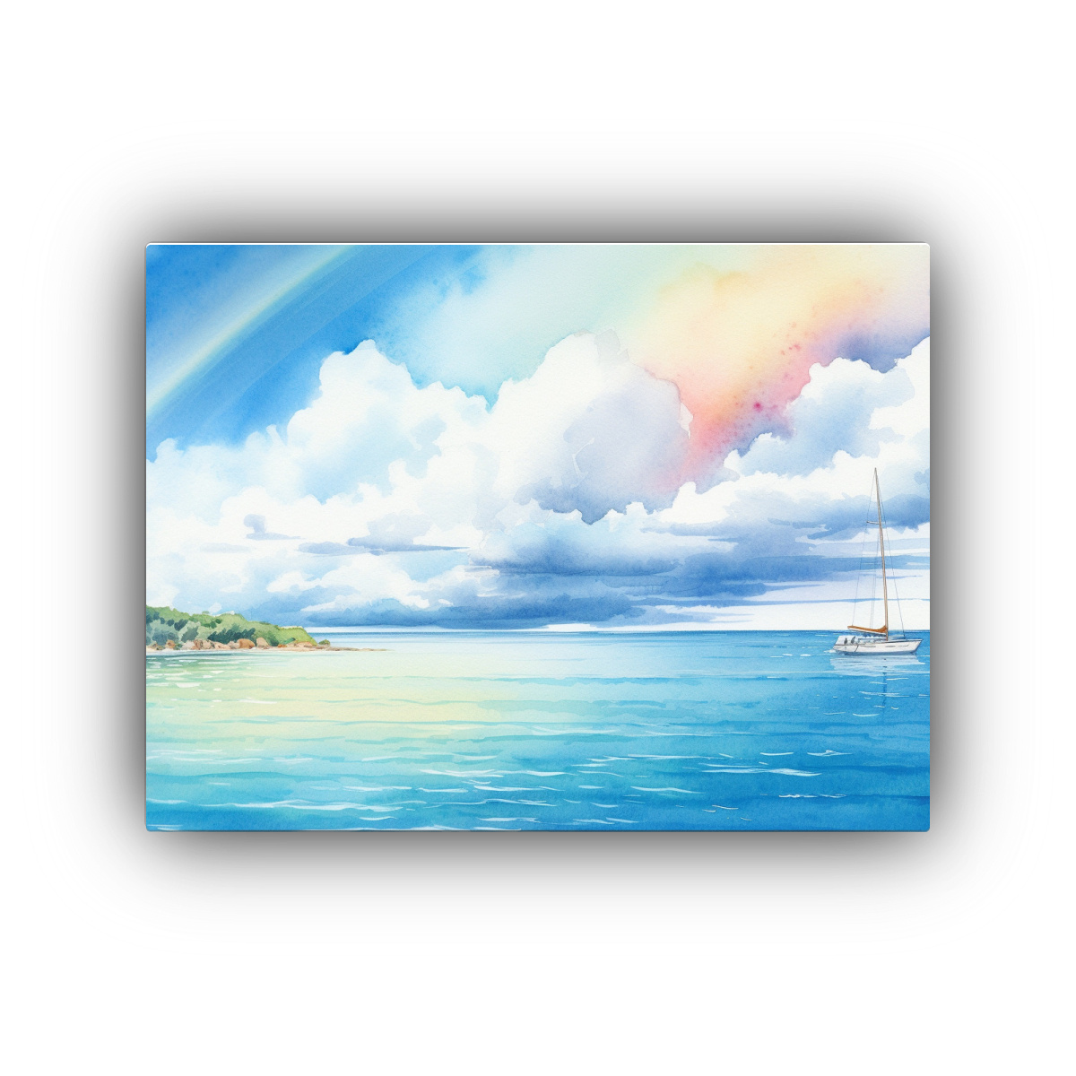 Cuadro Mar Azul Olas Velero Cielo Azul Nubes.