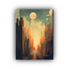 Cuadro Minimalista Ciudad Con Skyline En Acuarela, Fondo Negro