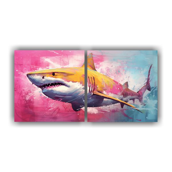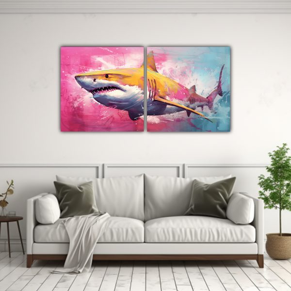 Renueva tu espacio con este cuadro minimalista de tiburón limón en tiza y colores rosa, neo pop art Impreso en tela de alta calidad con bastidores de madera, entrega gratuita en Santiago y envíos express a regiones Calidad y diseño únicos a precios accesibles