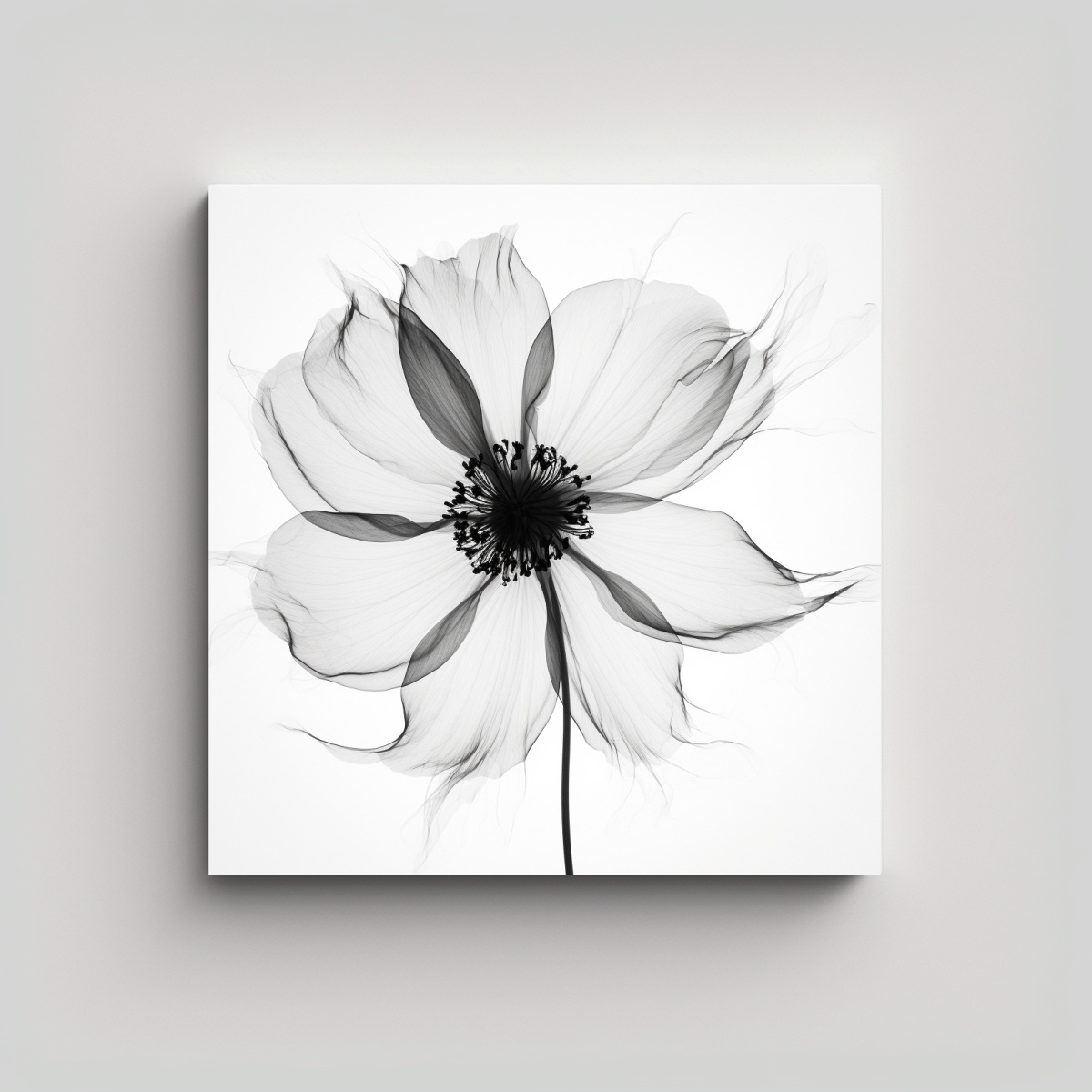 Cuadro Minimalista Elegante: Líneas Negras Y Pétalos De Anémona