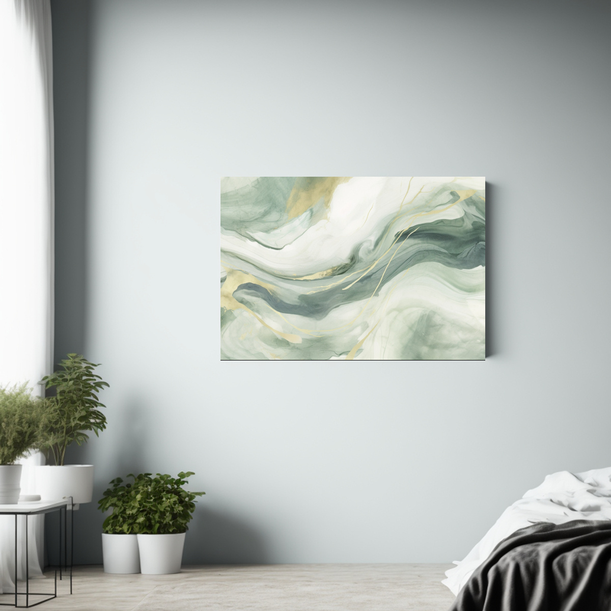 Cuadro Minimalista Juvenil Verde Salvia Con Remolinos De Mármol
