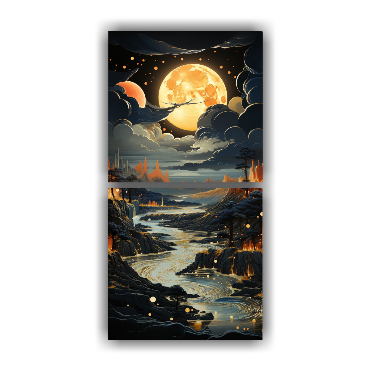 Este cuadro minimalista montaña fases lunares paisaje dorado es ideal para decorar tu sala de estar o dormitorio Colócalo sobre un sofá o una cama y crea un ambiente relajante y elegante Combina este cuadro con muebles en tonos neutros como blanco, negro o gris para resaltar su belleza ¡Transforma tu espacio con este cuadro exclusivo de DecoCuadros!