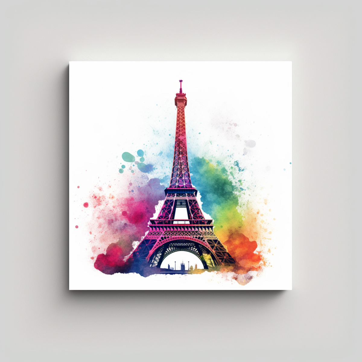 DecoCuadros te ofrece el Cuadro Minimalista Torre Eiffel con Tonos Acuarela, una pieza de arte exclusiva para decorar tu espacio Impreso en tela de alta calidad con bastidores de madera, este cuadro retro inspirado en la Torre Eiffel le dará un toque elegante y sofisticado a cualquier habitación Con tonos carmesí, azul marino grisáceo, coral, beige, turquesa, lila, plateado y menta, este cuadro minimalista es perfecto para crear un ambiente relajado y moderno