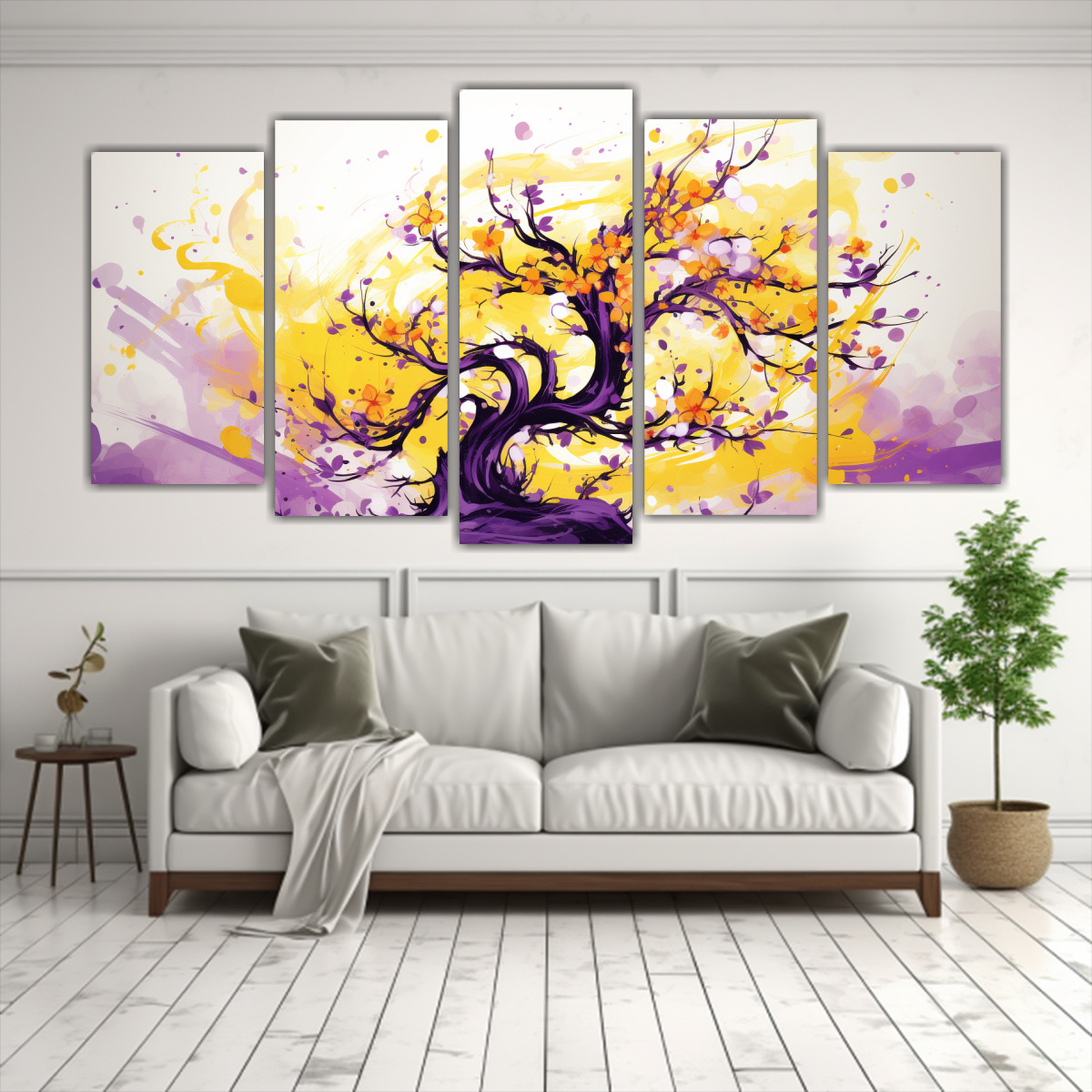 Cuadro Moderno A Todo Color Cinco Artes Modernos: Un Cerezo En Amarillo Y Morado, Atmósfera Neonoir