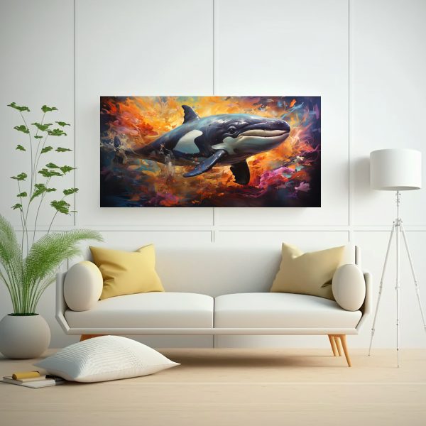 Este Cuadro de Ballena en estilo de pintura al Estilo óleo se vería espectacular en el living, sobre un sofá de color neutro para resaltar su colorido y líneas finas Combínalo con elementos decorativos en tonos similares para crear un ambiente armonioso y moderno