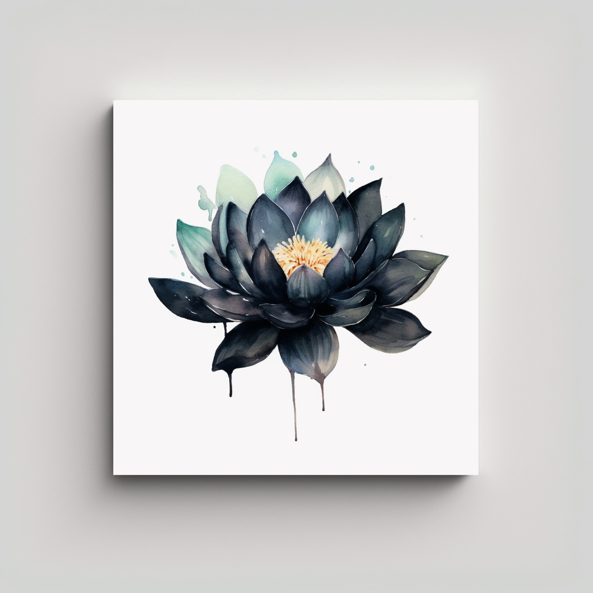 Cuadro Moderno Black Lotus: Armonía Cromática En Acuarela 0569