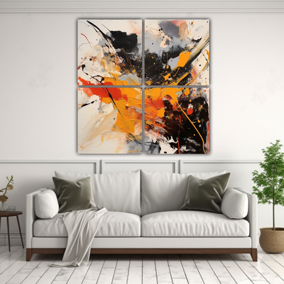 Cuadro Moderno Con Salpicaduras De Pintura En Bastidor Rectangular De 4 Telas