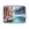 Cuadro Moderno De Alta Resolución: Paisaje Acuarela De Jiuzhaigou Por La Mañana.