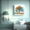 Cuadro Moderno De Árbol De Roble En Turquesa Y Naranja Para Oficina