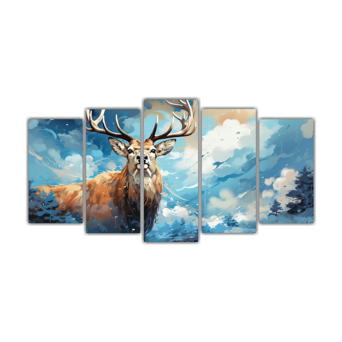 Añade un toque de arte moderno a tu hogar con este cuadro de ciervo en la nieve y azul cielo Los colores turquesa, azul marino grisaceo, plateado, chocolate, verde azulado, coral y carmesí se combinan para crear una pieza única Destaca tu buen gusto con la mejor calidad del mercado