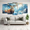 Cuadro Moderno De Ciervo En La Nieve Y Azul Cielo Pop Art Neo En Decoración.