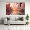 Este tríptico American cityscape en glassmorphism quedará perfecto en el salón o la sala de estar, creando un ambiente moderno y sofisticado Colócalo sobre un sofá beige para resaltar los tonos coral y chocolate, complementando con cojines en tonos gris y plateado para un efecto elegante y armonioso