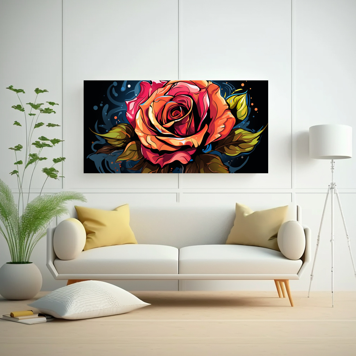 Cuadro Moderno De Diseño Combinación, Rosa Estilo Graffiti En Flor