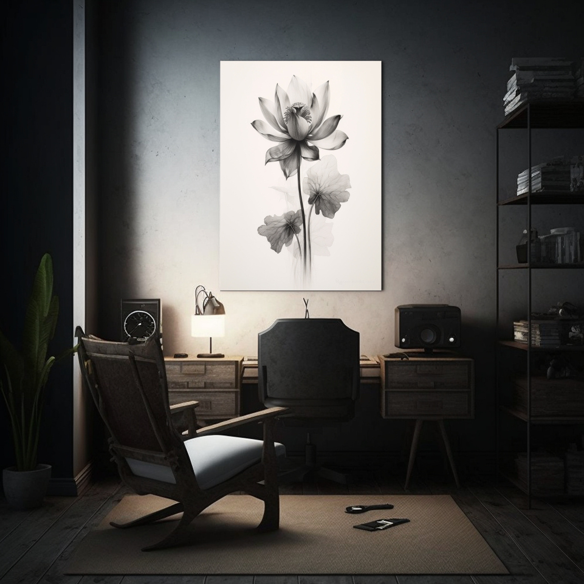 Cuadro Moderno De Figuras En Blanco Y Negro De Lirio De Agua Castellon En Hojas Marrones