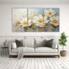 Este cuadro de flores amarillas en lienzo es perfecto para darle vida a tu sala de estar Colócalo sobre una pared de color gris o azul marino grisáceo para crear un contraste elegante y sofisticado Combínalo con muebles en tonos mostaza y accesorios decorativos dorados para lograr un ambiente cálido y acogedor