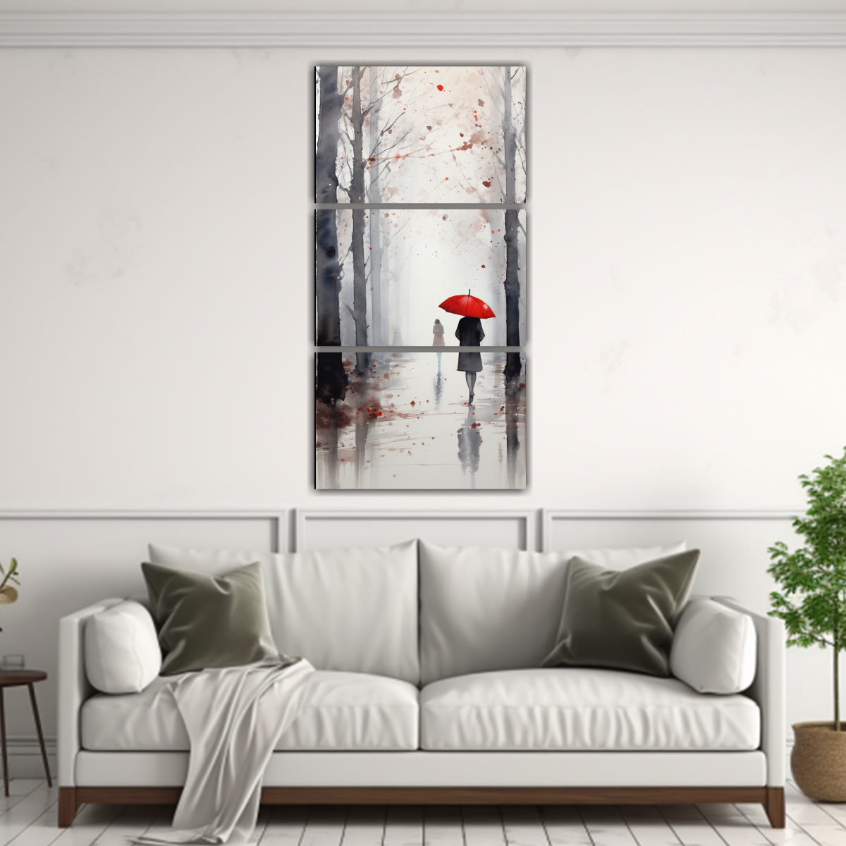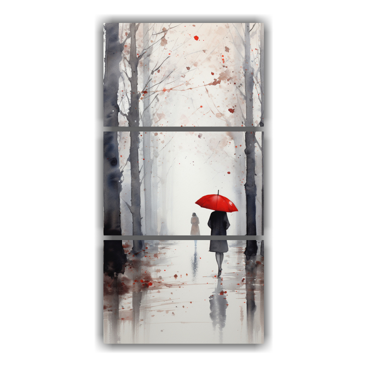 DecoCuadros te ofrece este cuadro moderno de personas caminando bajo la lluvia con paraguas rojo y árboles Impreso en tela de alta calidad con bastidores de madera, este cuadro aportará estilo y elegancia a tu hogar Disponible en varios colores para que puedas combinarlo a la perfección con tu decoración