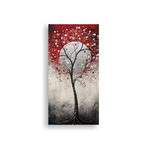 El Cuadro Moderno de Tela Rojo y Plateado con Árbol Estilizado de DecoCuadros es perfecto para darle un toque de elegancia a tus ambientes Con su diseño estilizado del árbol en colores plateado, azul marino grisaceo, carmesí y gris, esta obra de arte decorativa se convertirá en el centro de atención de tus espacios