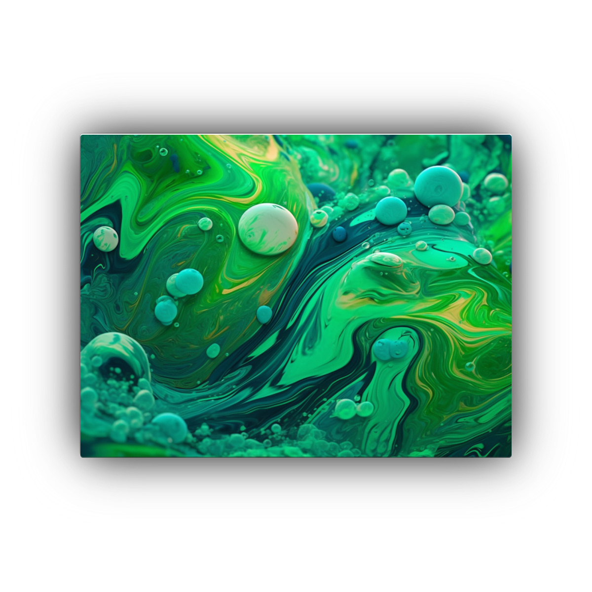 Lienzo Moderno Detalles intrincados green liquid background in the style of psychedelic Colores: Verde Azulado, Plateado, Menta, Azul Marino grisaceo, Turquesa, Verde, Gris Calidad y precio inigualables Entregas rápidas y envíos express a regiones