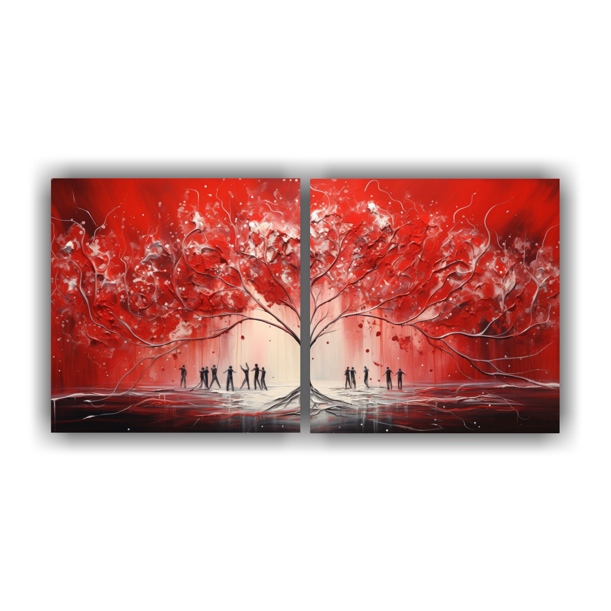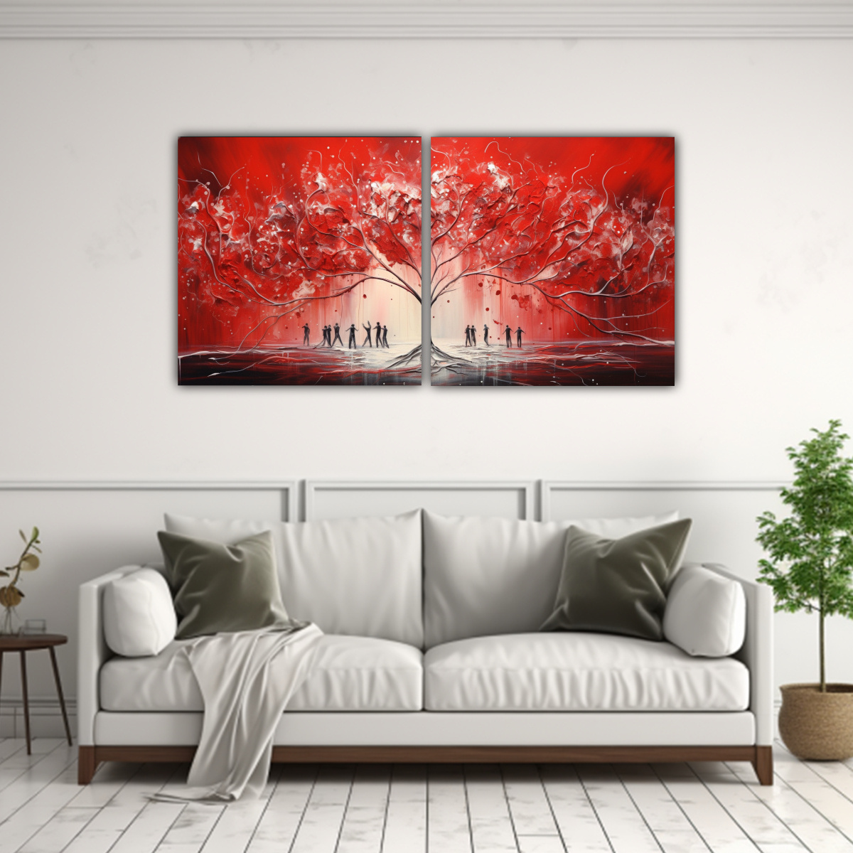 Cuadro Moderno En Escena De Dos Telas En Rojo Y Plateado