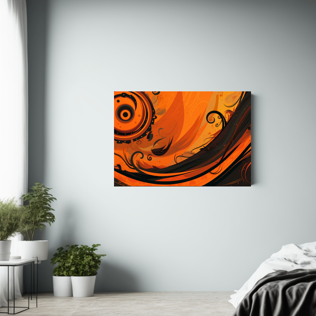 Renueva tu espacio con este elegante cuadro en tonos naranja y cromo, perfecto para salas de estar o dormitorios Los colores vibrantes y el diseño refinado destacarán en cualquier ambiente