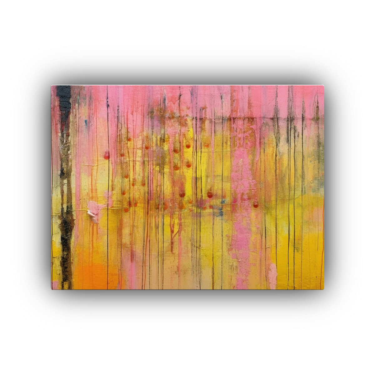 Para realzar la belleza de este cuadro moderno en rosa y amarillo, te recomendamos colocarlo en una pared blanca para crear un impacto visual Combínalo con muebles en tonos neutros para lograr un contraste elegante y sofisticado en tu ambiente ¡Dale vida a tus espacios con esta pieza única!