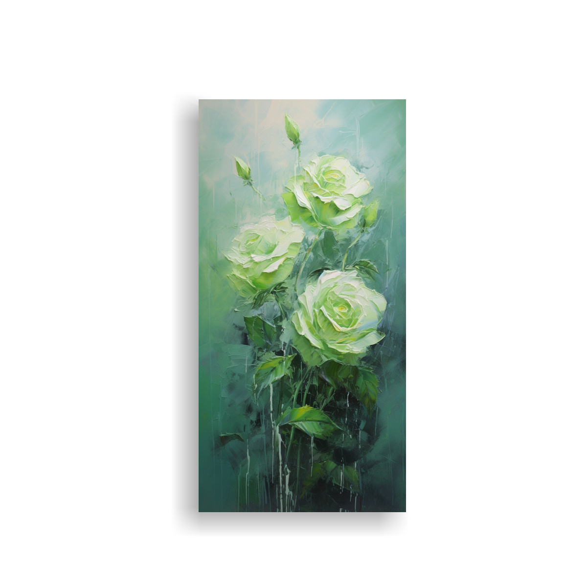 Cuadro Moderno Estilo Green Roses Pintado En Lienzo