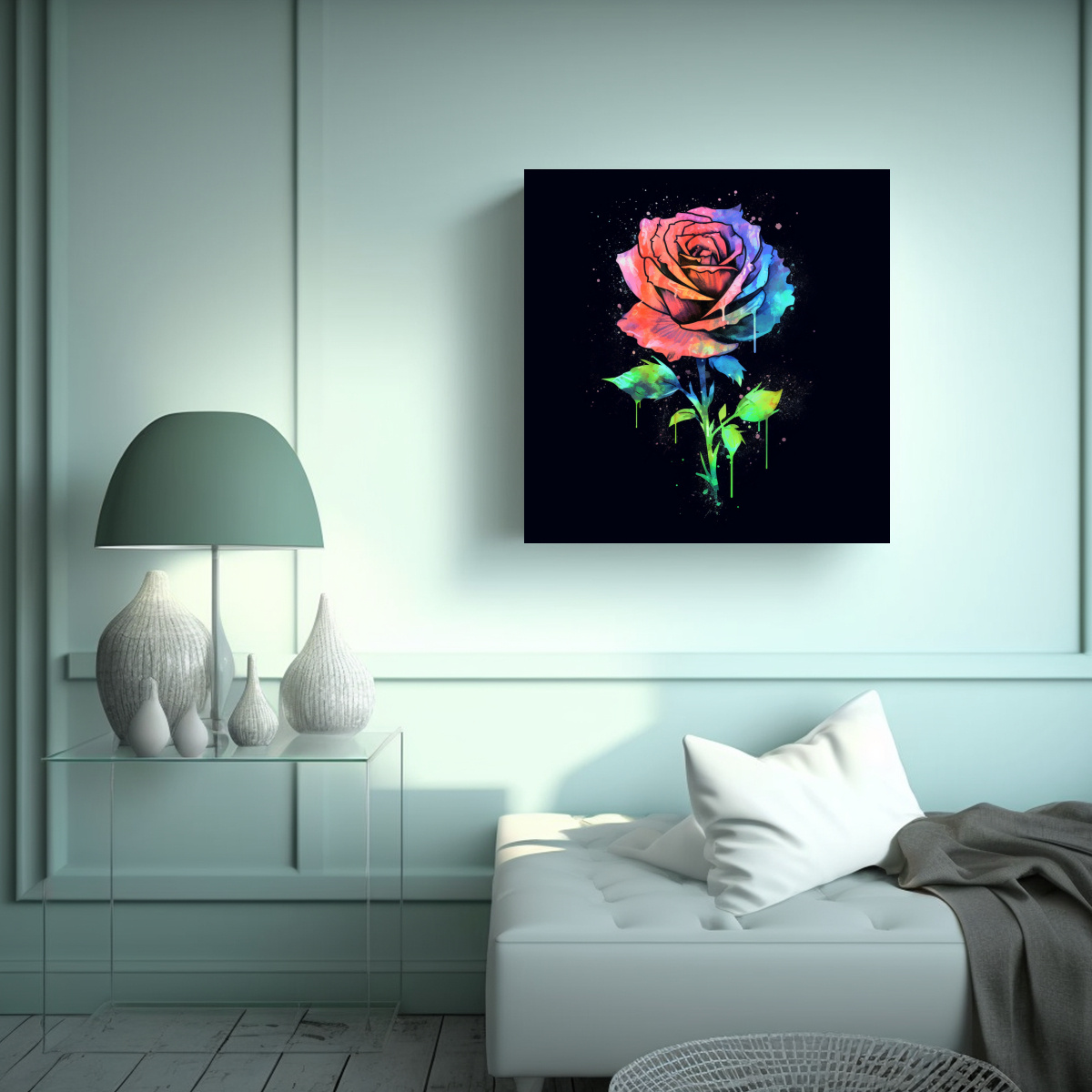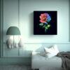 Cuadro Moderno Impactante De Rosa Fluorescente 0569 En Acuarela